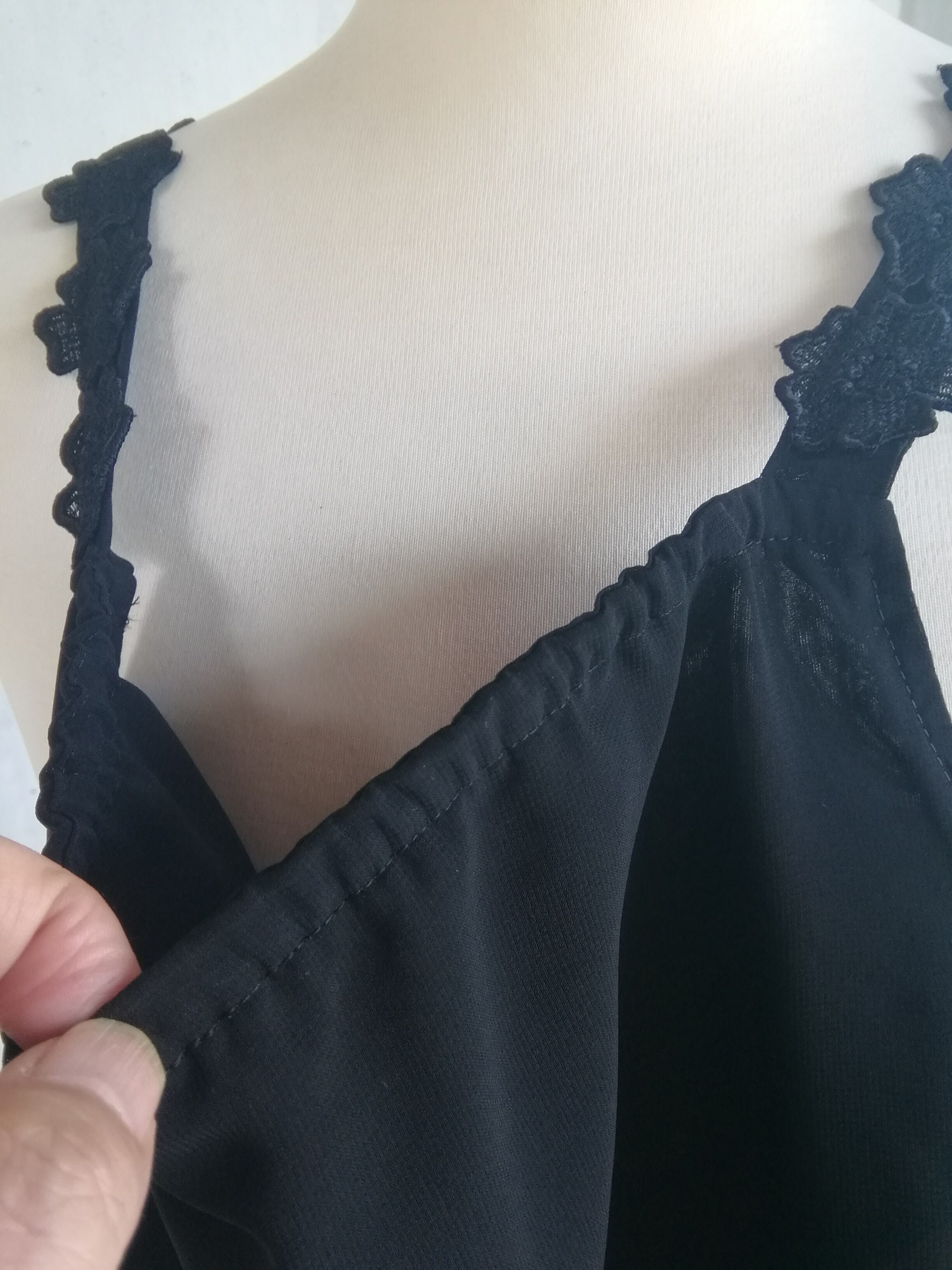 普段の着こなしに重ね着していただくだけでおしゃれ感が増す、合わせやすい黒のチュニックビスチェが出来上がりました。