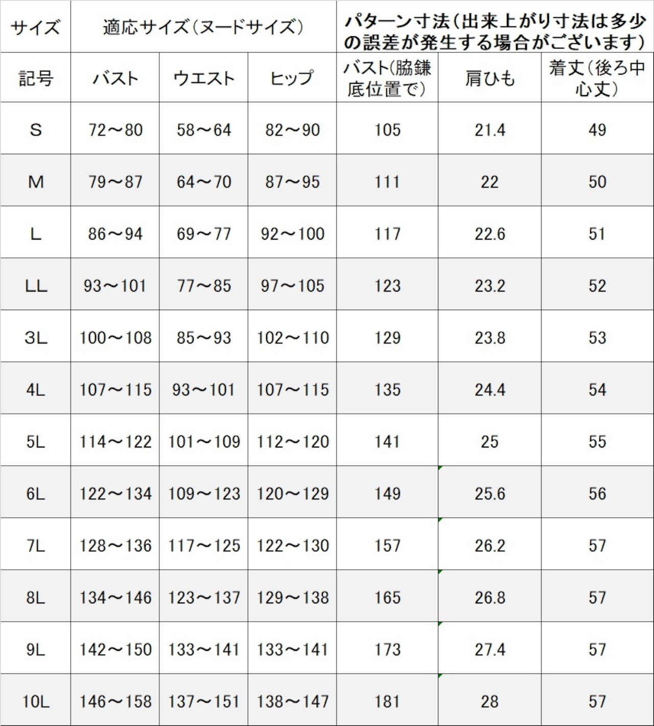 S~3Lサイズ(パターン上サイズの為、出来上がりに多少の誤差はございます。)