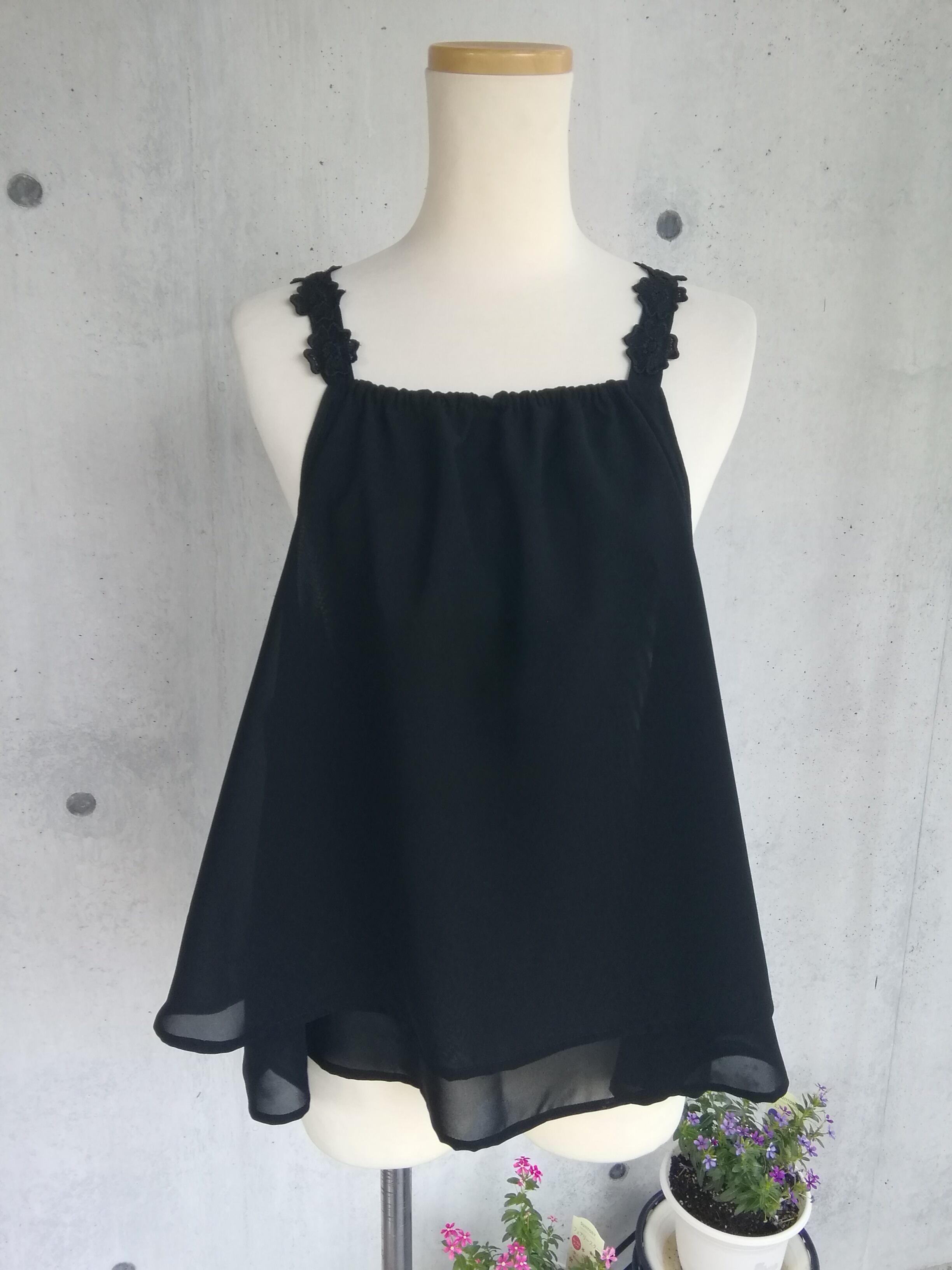 普段の着こなしに重ね着していただくだけでおしゃれ感が増す、合わせやすい黒のチュニックビスチェが出来上がりました。