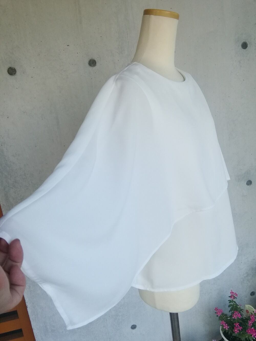 ノースリーブに抵抗がある方、ケープですっぽり隠れ、体のラインも拾いません。