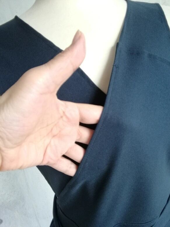 羽織って着るタイプ。着物のような合わせでウエストで結ぶ仕様です。