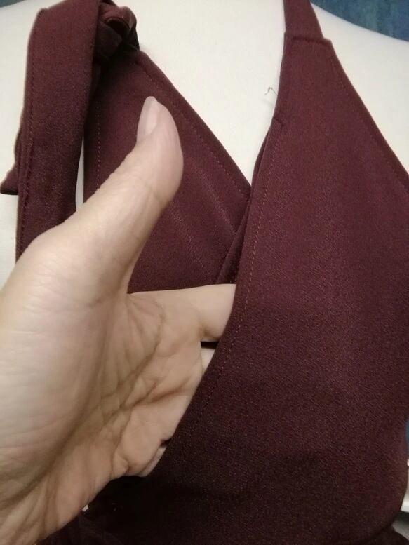 ウエストのリボンは後ろでクロスし、前右脇で結ぶタイプ。