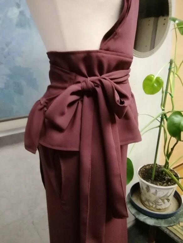 梨地ストレッチの落ち着いたワインレッドの茶道お稽古用エプロンをご紹介します。茶道のお稽古用としても普段使いとしても楽しめる、かわいらしいロングエプロンです!