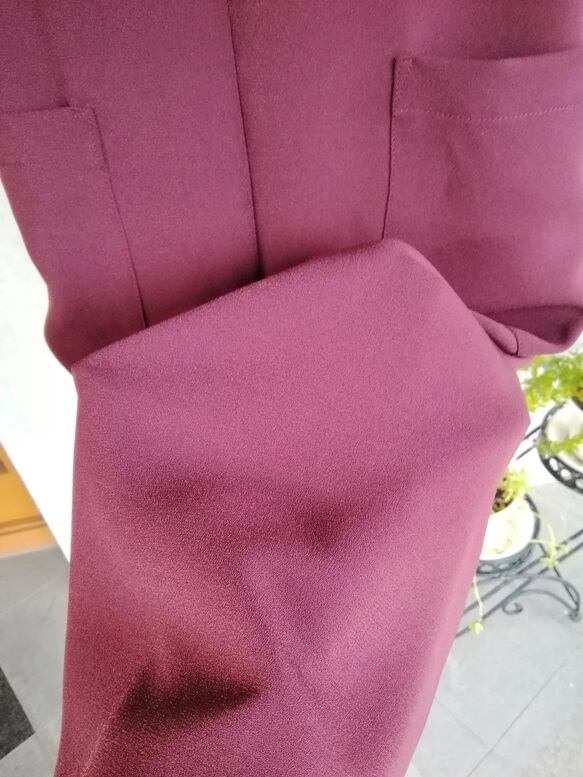 梨地ストレッチの落ち着いたワインレッドのロング丈エプロンをご覧ください。普段使いやお仕事、プレゼントにもピッタリです!
