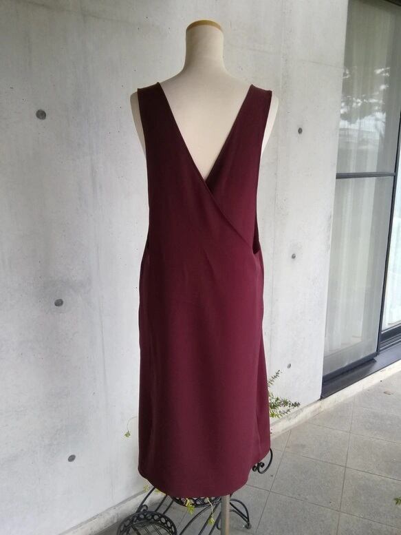 Vネックですっきり、身頃とスカート部分を1枚で仕上げていますので、ストンとしたシルエットでしっかりした生地ですが軽く仕上がっております。