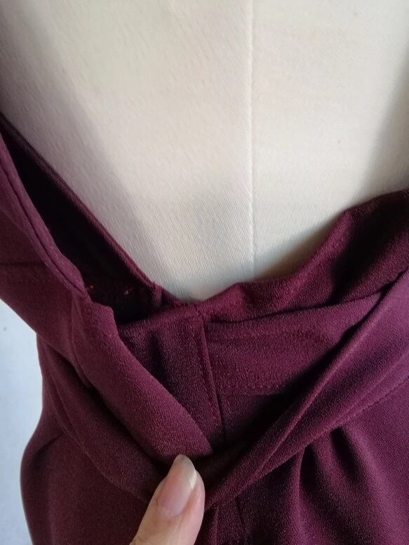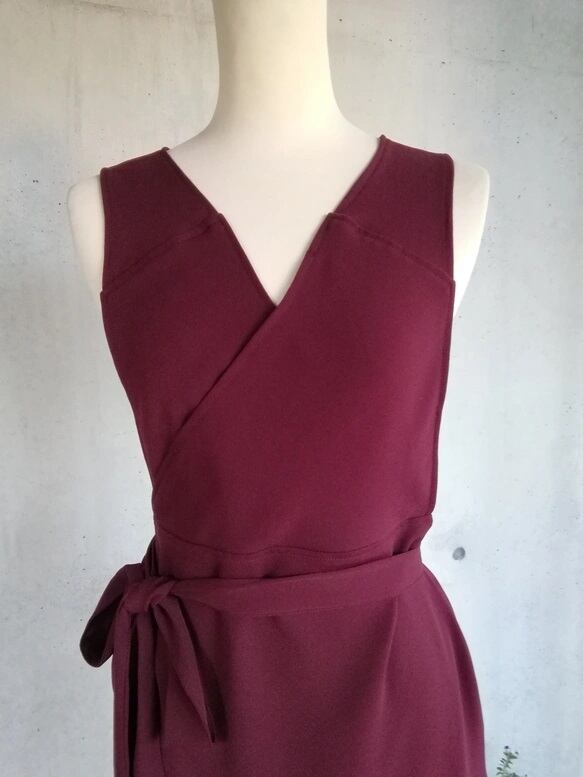 羽織って着るタイプ。着物のような合わせでウエストで結ぶ仕様です。