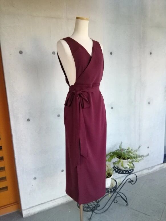 茶道お稽古用エプロンにもなる着やすい、羽織って着るタイプのロングエプロン、ウエストリボン付きで出来上がりました。ストレッチ入りの素材でより着やすくなりました。