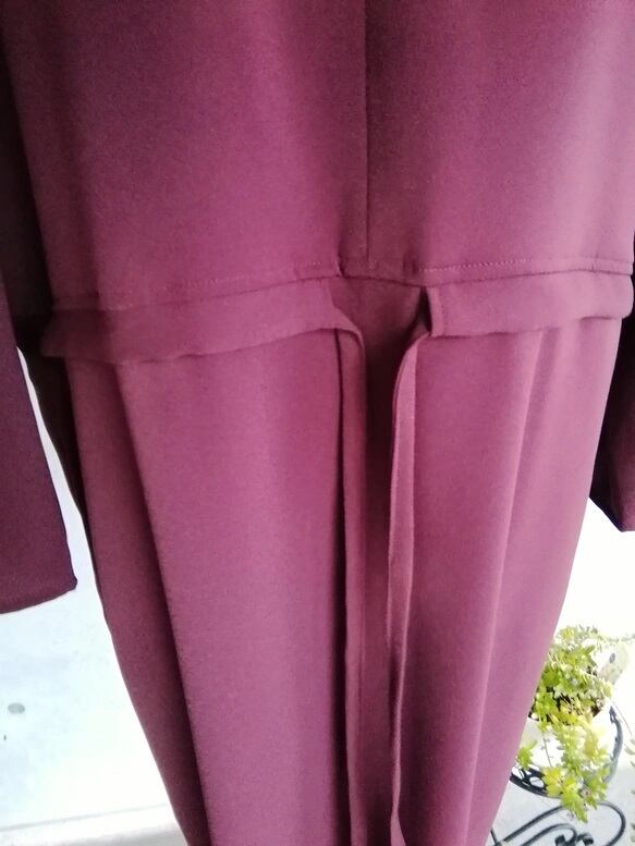 Mサイズ 1枚限定セール ドルマンスリーブIラインワンピース 梨地ストレッチ ボルドー 137800-50-M