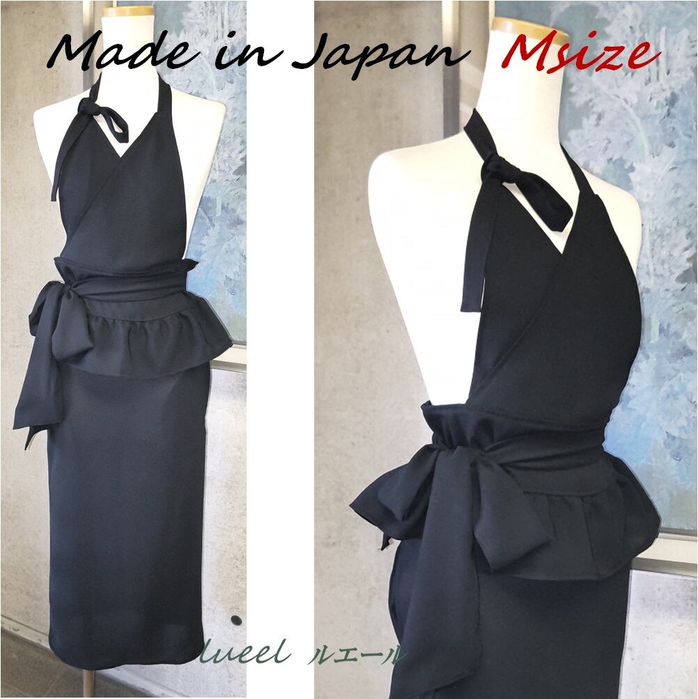 【Mサイズ1点限定特価】茶道エプロン/黒 お客様の声から誕生!洋服でお稽古・普段使いも◎ストレッチ/116100-28M | 大きいサイズエプロン 可愛い日本製の大きいサイズエプロン通販【lueel】